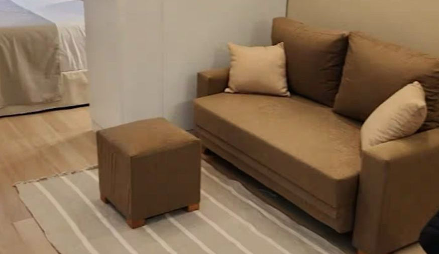 Living Space: The living space offers a warm and comfortable setting with wood flooring and modern finishes. A dining table for four makes it practical for meals or study, while the sofa easily converts into a bed, adding flexibility for guests or extra sleeping space. AC is included.